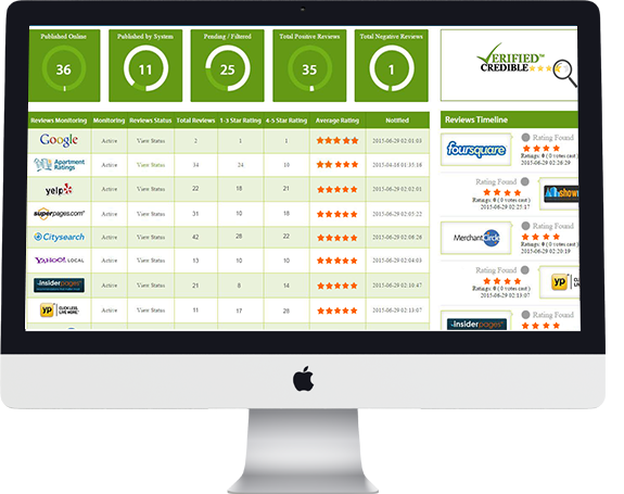With Verified Credible's Reviews Monitoting and Reviews Alerts you can track what your customers are saying about you whe they are saying it! Our analytics dashboard will give great insights on how your customers feel about your company, products and services! Happy customers equals happy profits!